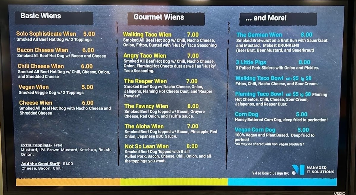 Plain smoked all beef 1/4 lb Wien (2 toppings free only). If more than 2 toppings are chosen then you will only receive the first 2 toppings chosen.