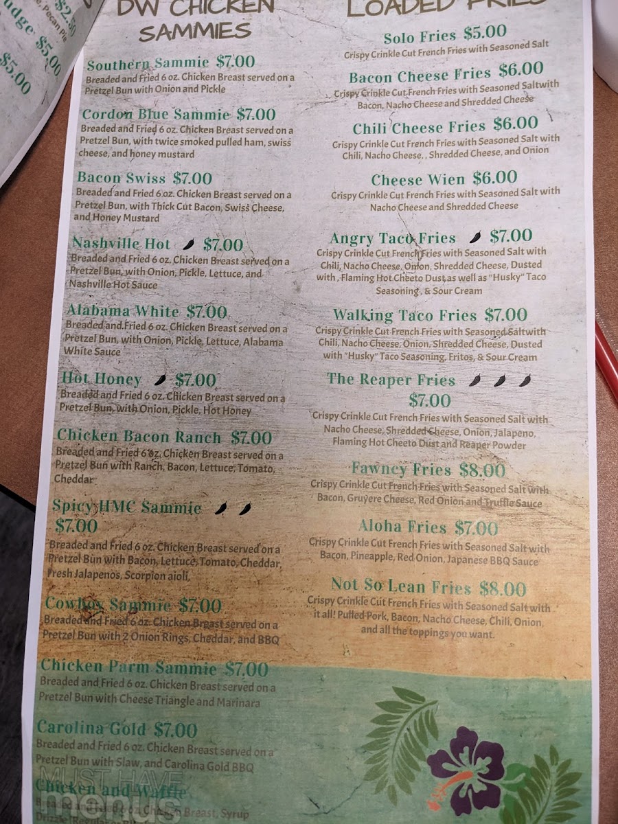 Smoked 1/4 lb all beef wien, american cheese, lettuce, pickle, onion, and house made mac sauce. The golden arches have nothing on this hot dog!